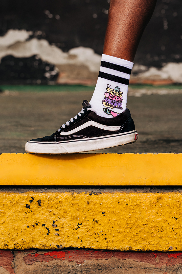 En este calcetín incluye lo mejor de la vida: paz, amor y música.
